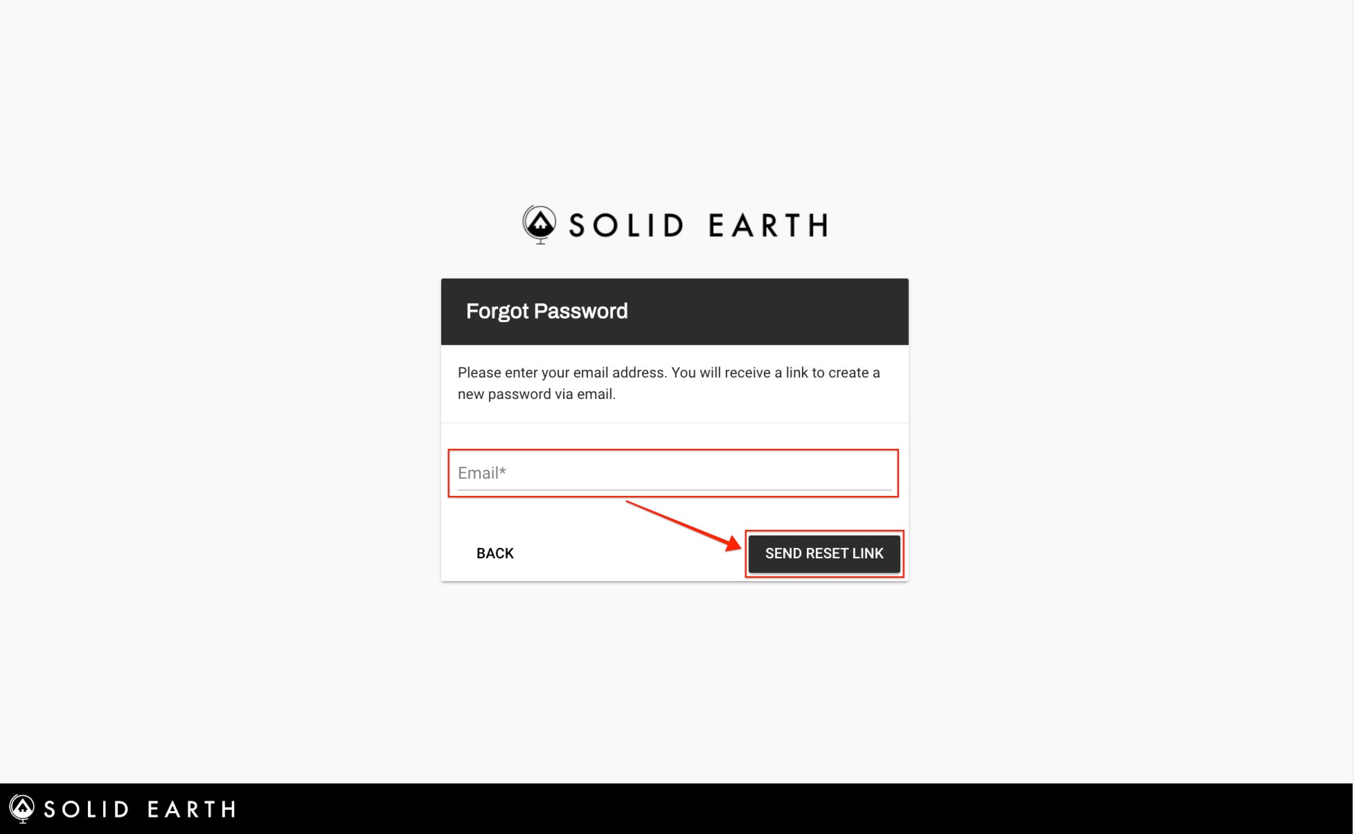 Then, enter the email that you use to log in to mySolidEarth and click "SEND RESET LINK"